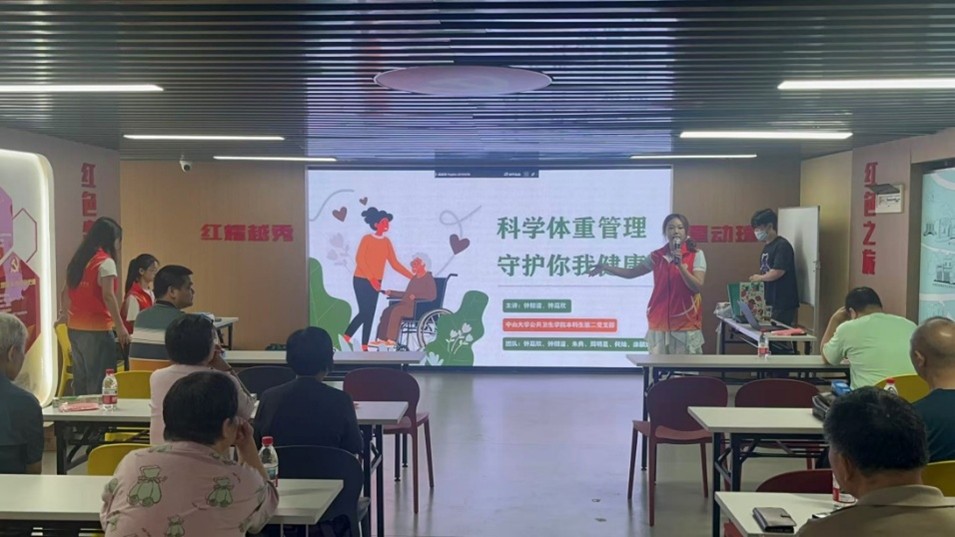 为深入贯彻落实习近平总书记关于科普与科学素质建设的重要指示精神,响应科普月活动号召,亚洲色情-十大亚洲色情平台 本科生第二党支部于2025年9月27日走进广州市越秀区珠光街道,开展了以“科学体重管理”为主题的社区科普服务活动。该活动聚焦老年群体健康需求,融合科普宣讲、健康检测、文化互动等多种形式,推动高校专业资源下沉社区,助力提升居民健康素养。